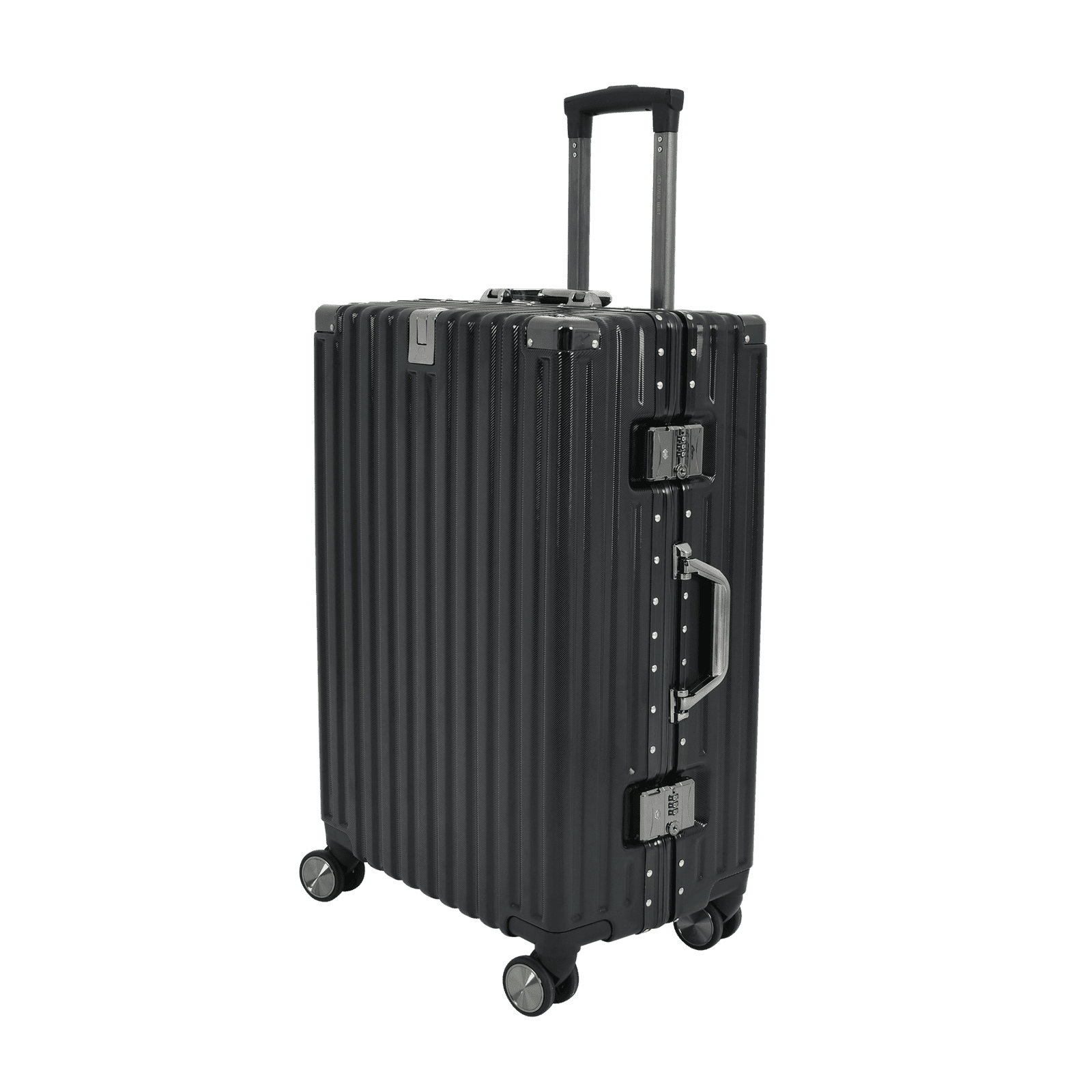 Vintage Black Aluminum Suitcase – Hard Shell Luggage with TSA Lock & Spinner Wheels