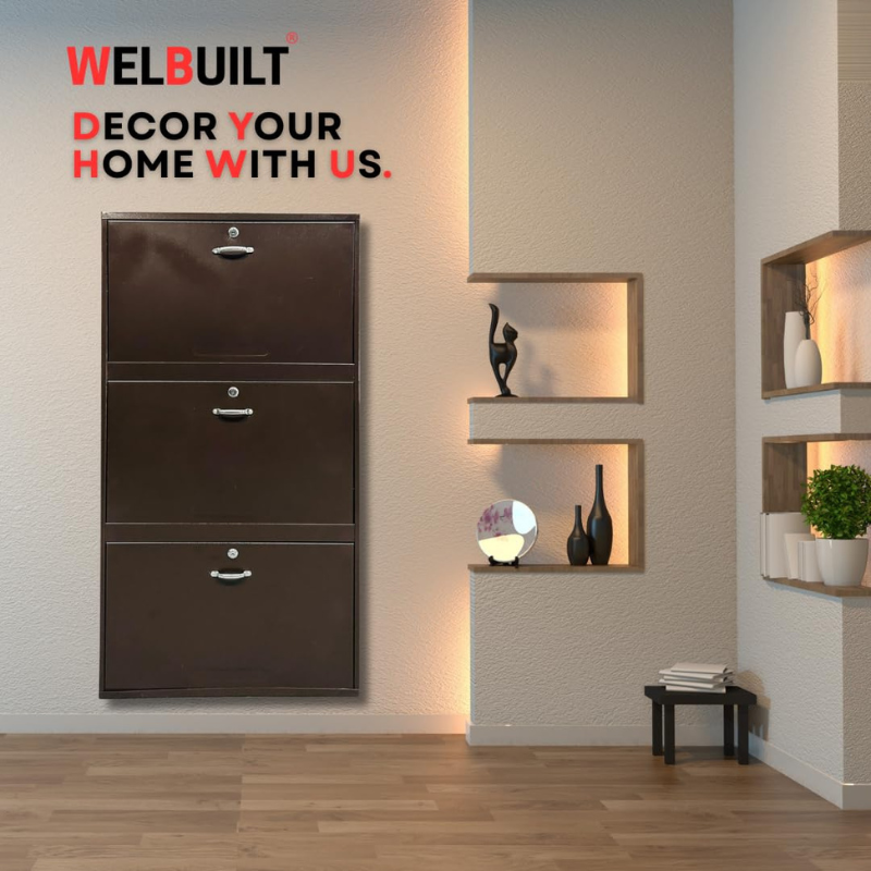 The wall-mounted design saves floor space while the ventilation holes ensure airflow to keep your shoes fresh and odor-free. Available in multiple elegant color options, the WelBuilt shoe cabinet is the perfect blend of durability, capacity, and design innovation — ideal for homes, offices, or commercial use.