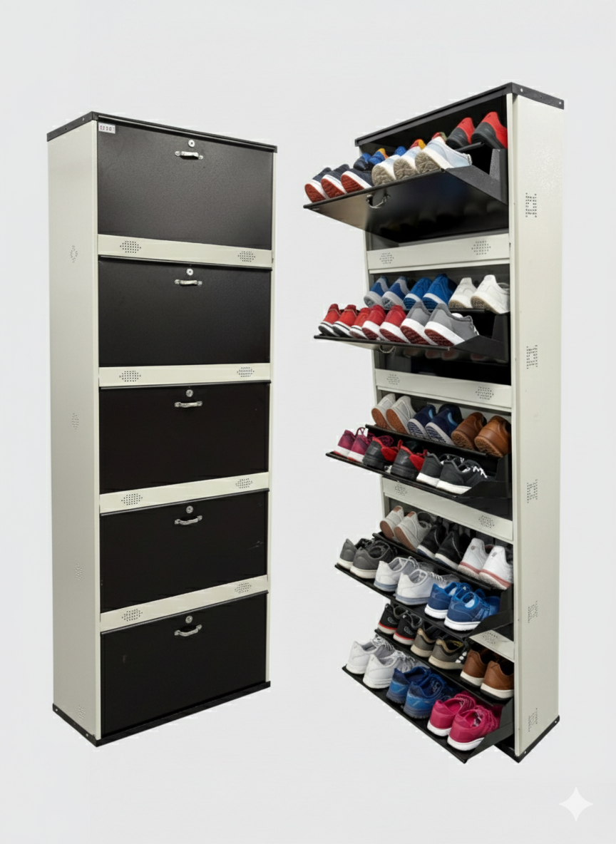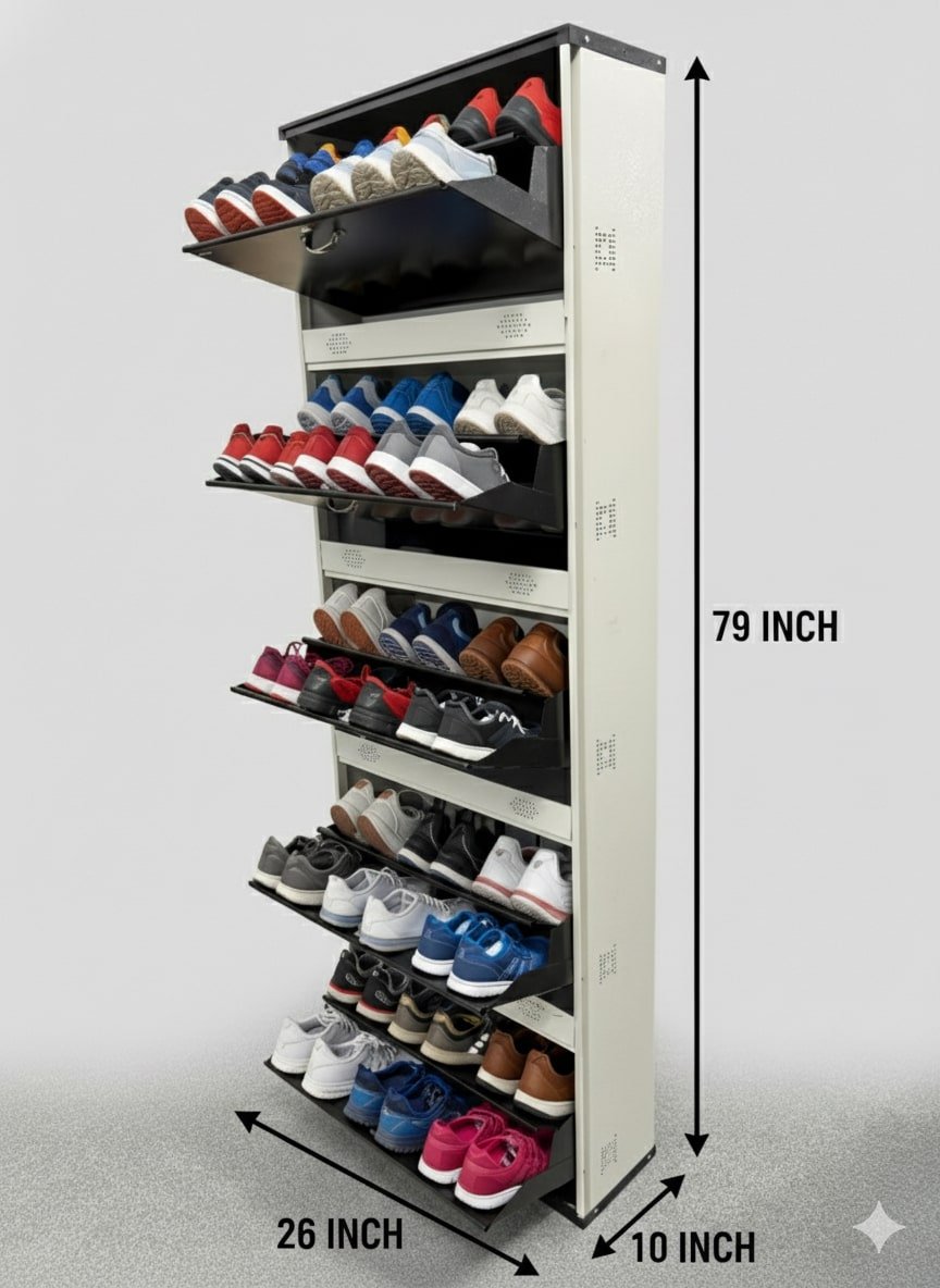 - Optimal Capacity: Five spacious shelves designed to store and organize multiple pairs of shoes neatly.