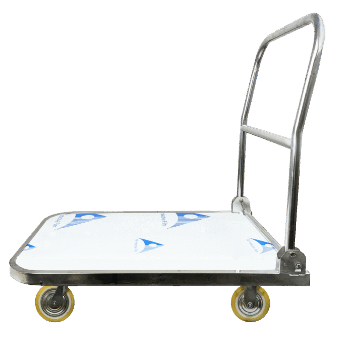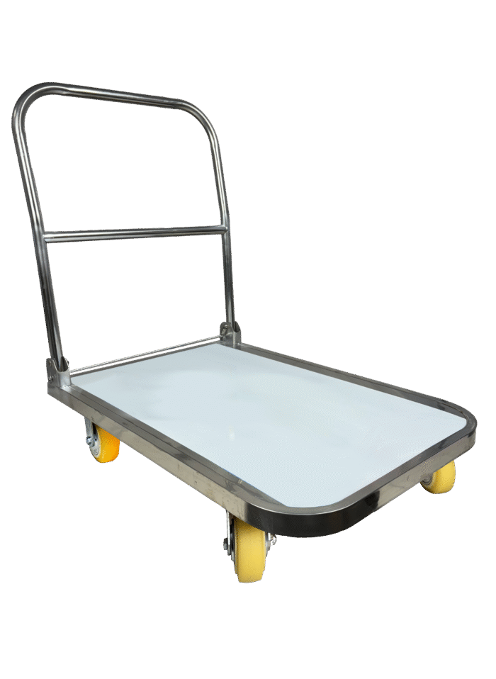 Built from premium steel with a powder-coated silver finish, this trolley offers superior durability, corrosion resistance, and long life. Measuring 130×86×15 cm, it provides ample platform space for large and bulky materials.