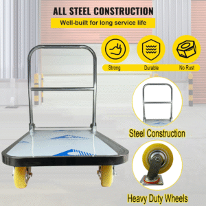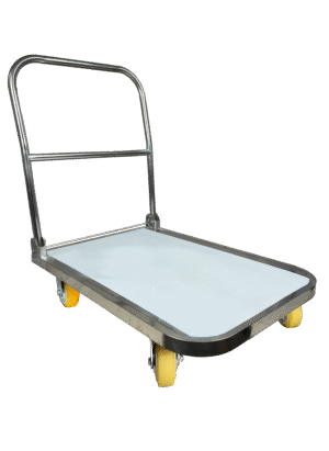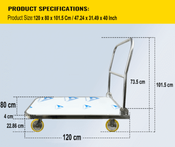 Built from premium steel with a powder-coated silver finish, this trolley offers superior durability, corrosion resistance, and long life. Measuring 130×86×15 cm, it provides ample platform space for large and bulky materials.