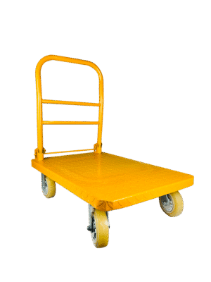 The Welbuilt Platform Trolley (500 Kg) – Yellow Iron with non-slip platform and 91×64×60.5 cm dimensions ensures safe, stable, and smooth transport of heavy goods. Its foldable handle and 360° swivel wheels make it ideal for warehouses, offices, and workshops.
