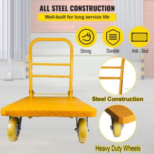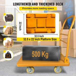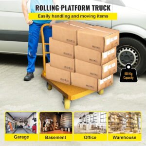 Welbuilt Platform Trolley 500 Kg Capacity (91×64×60.5 cm) – Yellow Iron | Non-Slip Platform Heavy-Duty Hand Trolley for Industrial & Commercial Use